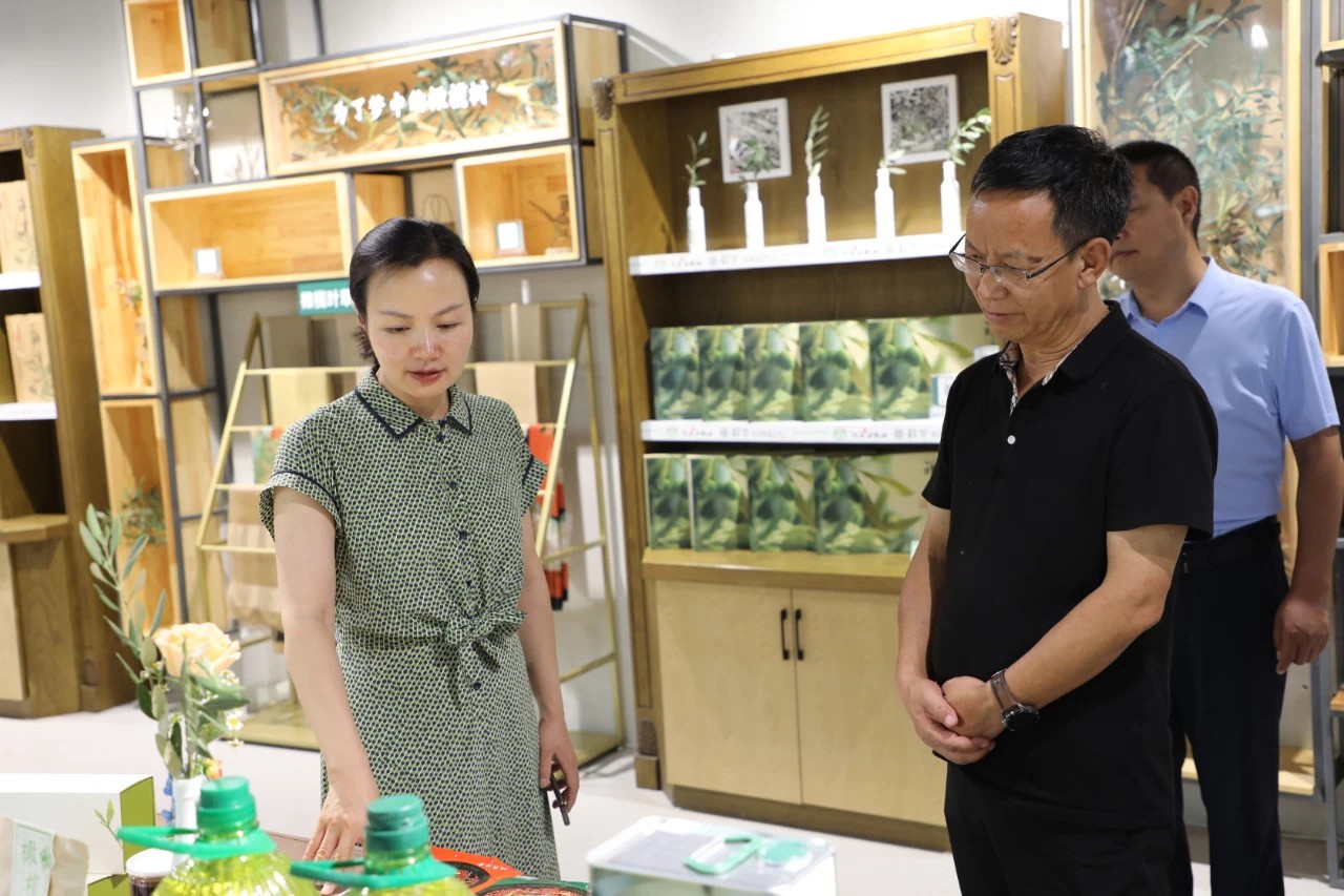 在產(chǎn)品體驗區(qū)劉玉紅董事長向趙校長一行介紹了祥宇特級初榨橄欖油、橄欖茶、橄欖菜、橄欖保健品等系列產(chǎn)品,