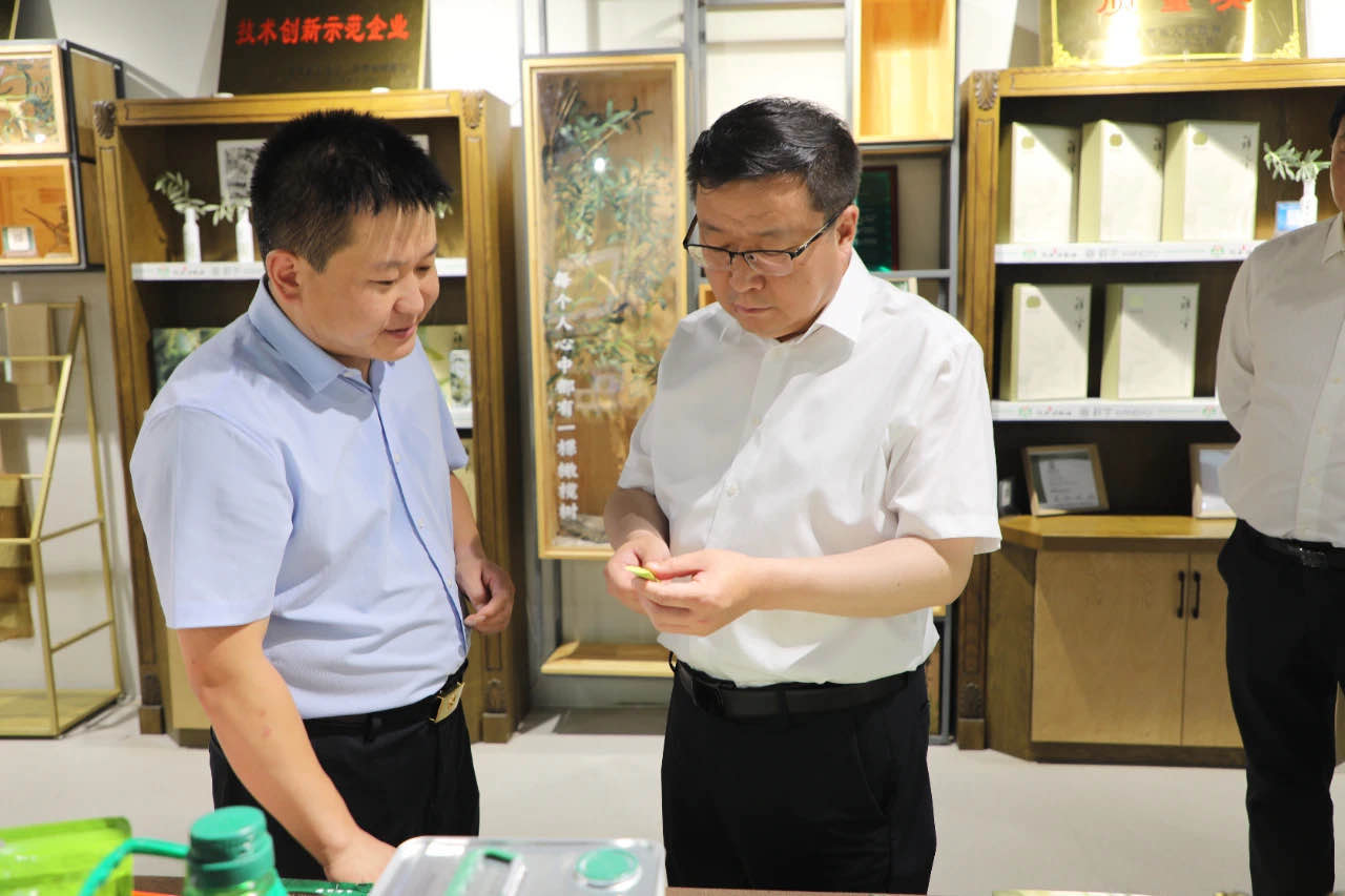 在產(chǎn)品體驗區(qū)李建科總經(jīng)理向劉市長一行介紹了祥宇特級初榨橄欖油、橄欖茶、橄欖菜、